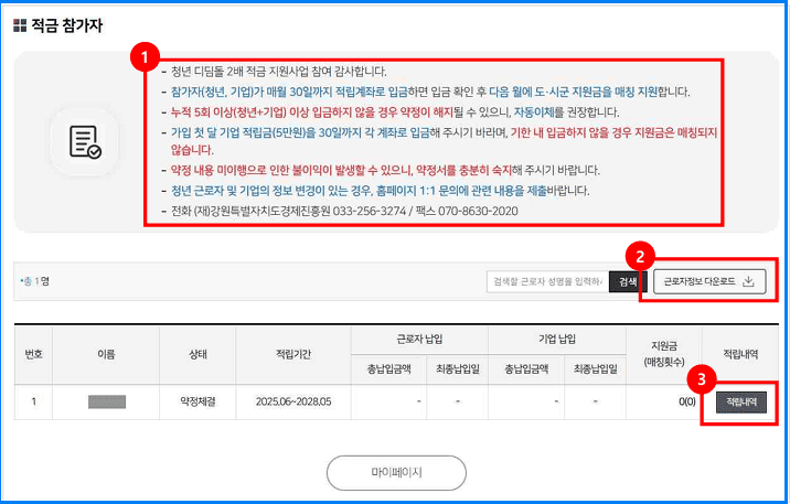 청년 근로자가 먼저 약정 체결을 완료한 뒤, 기업도 반드시 약정을 진행해야 최종적으로 참가가 확정됩니다.