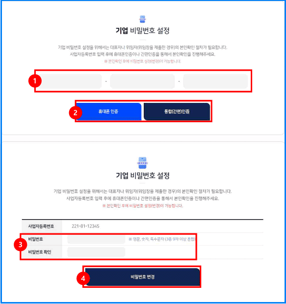 - 개인사업자: 대표자 간편인증 또는 공동인증